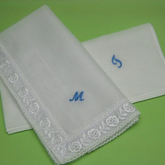 結婚祝いにおすすめ 新郎新婦のイニシャル刺繍入りウェディングハンカチセット 挙式アイテム 結婚式グッズ専門店シェリーマリエ